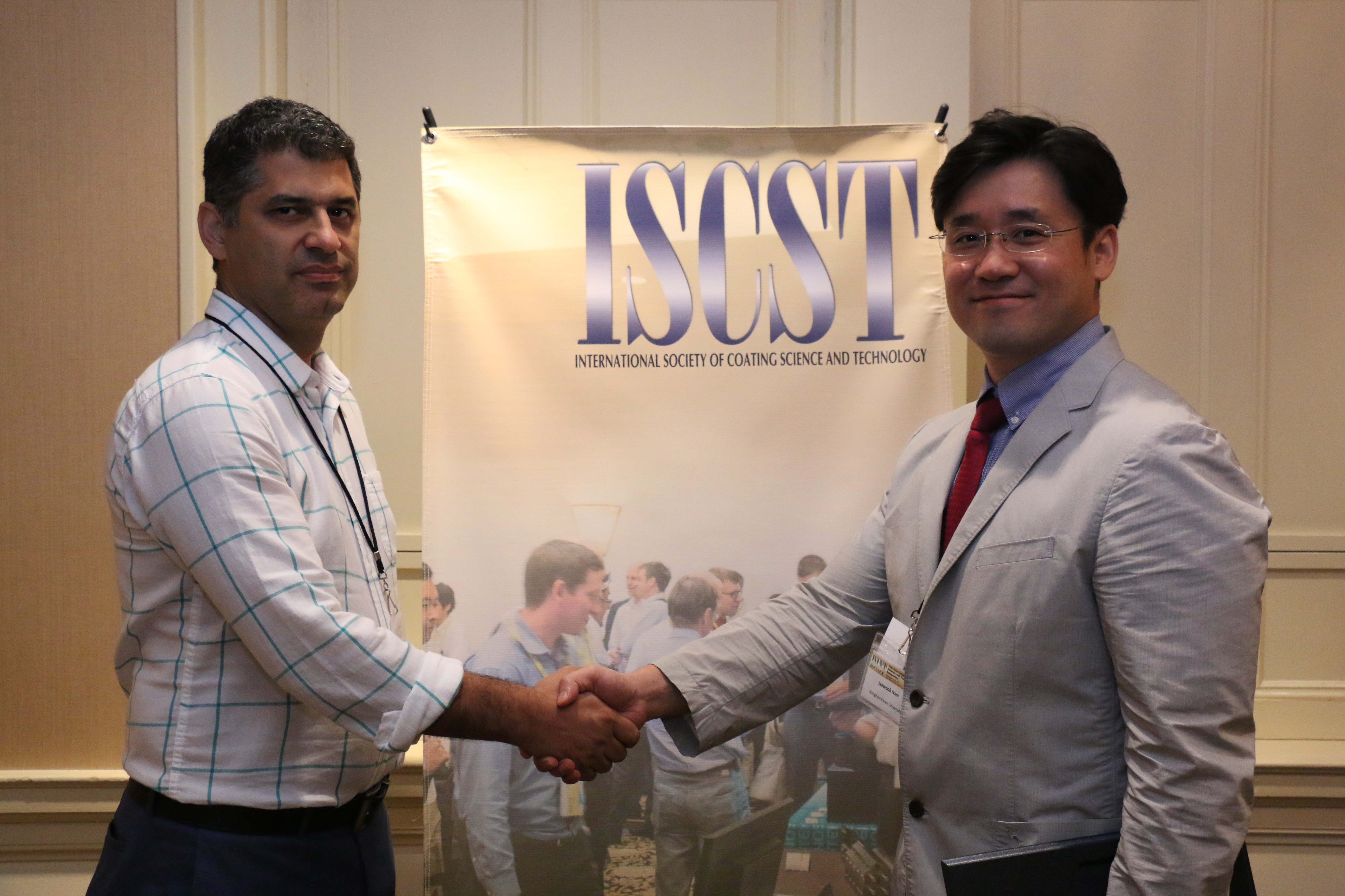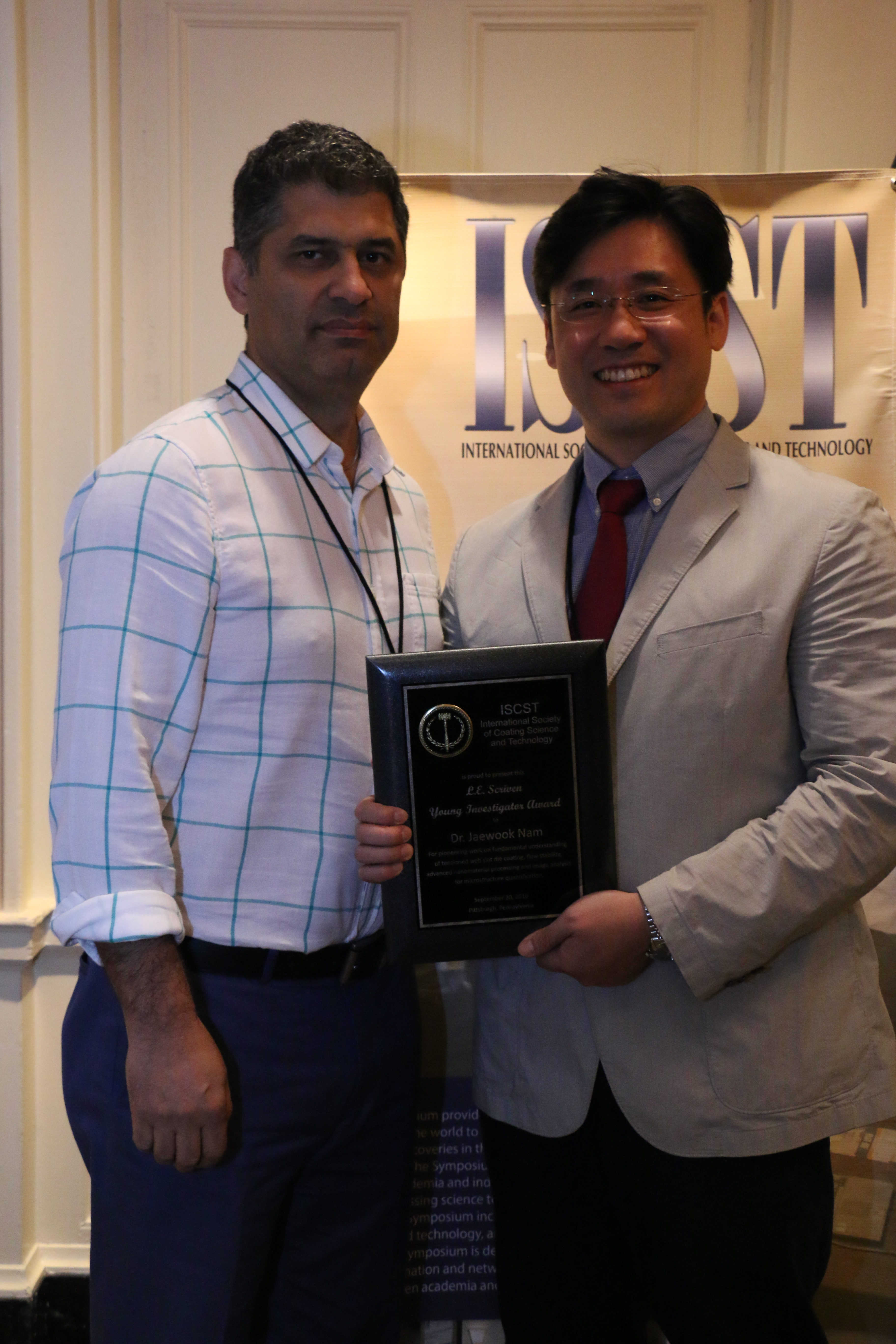 Prof. H. Pirouz Kavehpour presents the 2016 L.E. Scriven Young Investigator Award to Dr. Jaewook Nam of Sungkyunkwan University