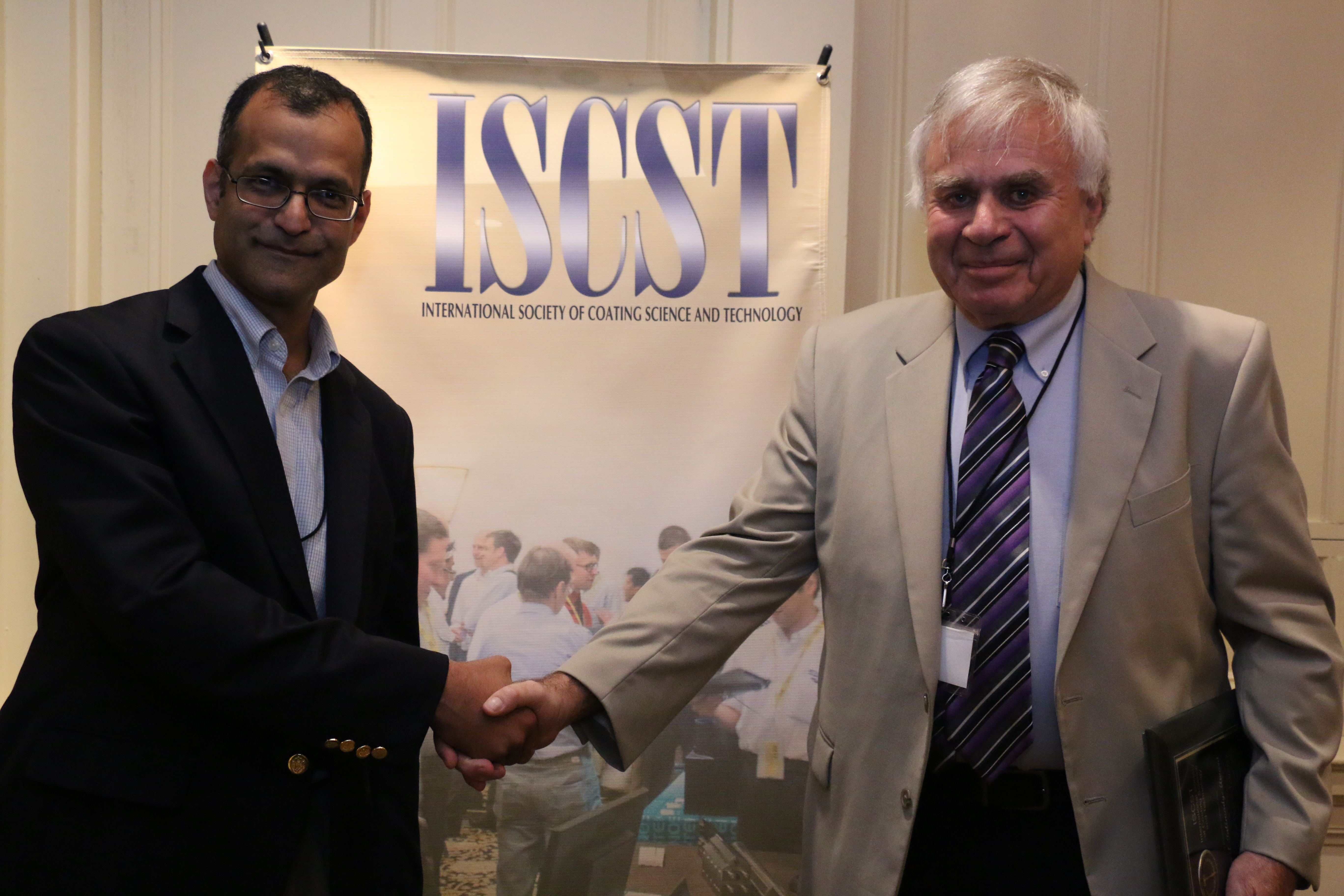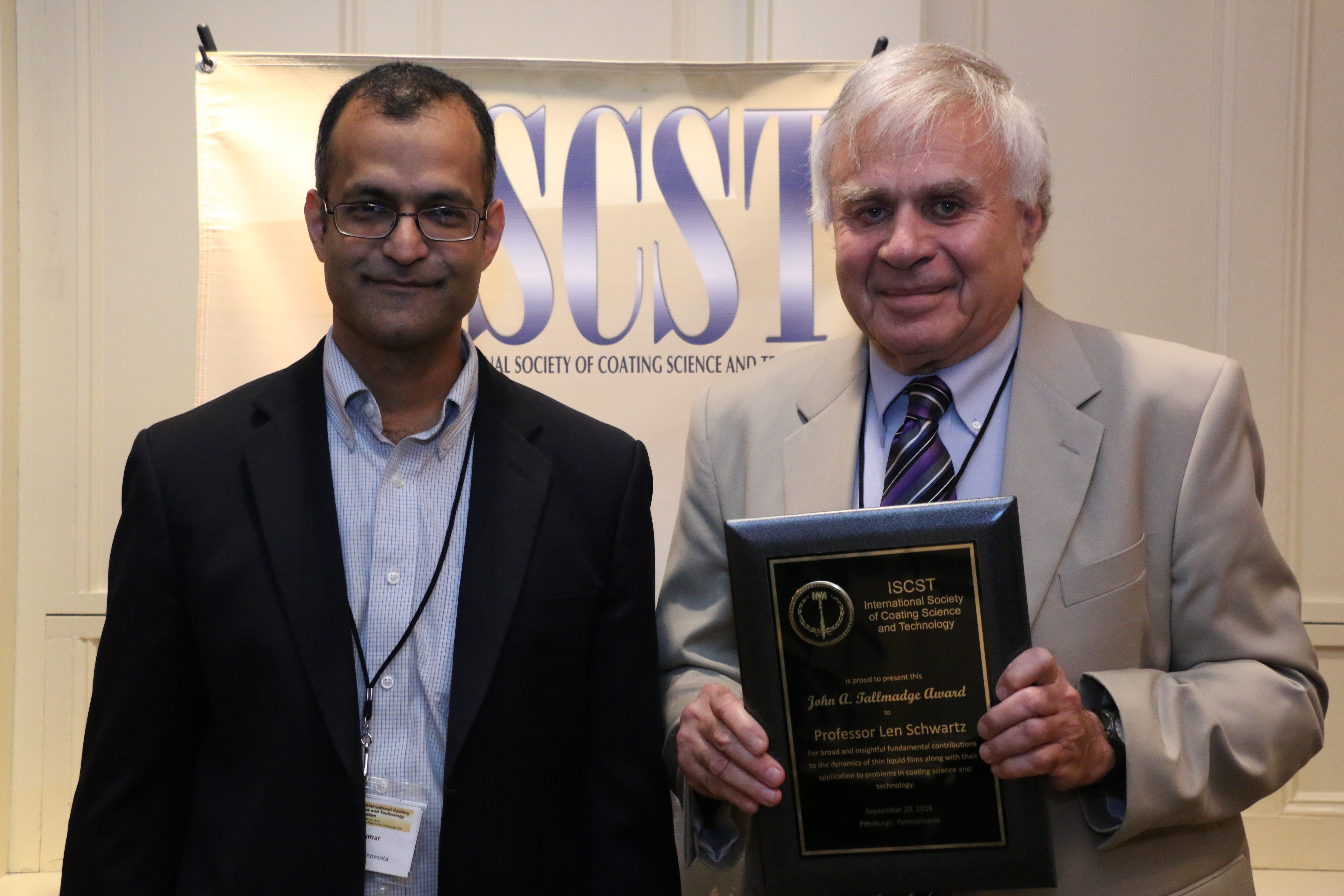 Prof. Satish Kumar presents the John A. Tallmadge Award to Dr. Leonard Schwartz of the University of Delaware